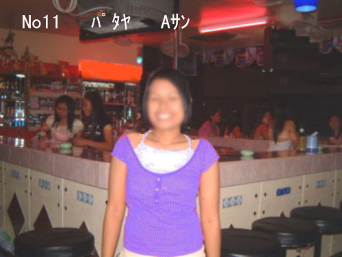 9.3、Aサン 写真No11 パタヤ ビアバーR 連れ出し料200バーツ ロング1、500バ ーツ ゴーゴーバーを回ったがつまらなかったので夜1時過ぎにビアバーに行きビールを頼んだ。Aサン とタイ式4目並べを始め、殆ど勝つつもりだったが勝率2割であった。Aサンは服装のセンスは酷く愛 想もないが、ゲームを1手1手考ながら進める様子から頭の良い人に見えた。まあいいかと思い、連れ 出し料を払い安宿(1泊200バーツ)に連れていった。