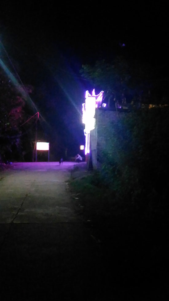 次に巡ったのは同じくカオバン中心部から南側に位置している 丘の上までの一本道を頂上まで登りきった行き止まり付近に ある暗闇の中にポツンと光り輝く妖しさ満点のニャギです。