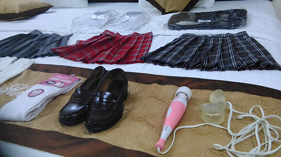 なんだ勘だと再びホテルへと戻ってきたエロ兄は今夜のメインイベントである置屋からの お持ち帰りオールナイトに備えて今回は全部で3種類の制服を用意してみました。
