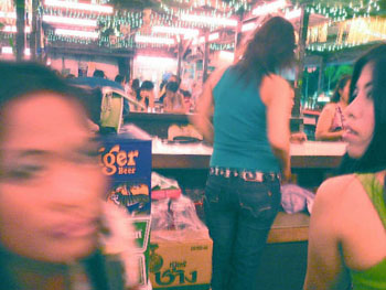 もうティッキーは来そうにもないので、どうしたものか。可愛い子に話しかけられる が、彼女は明日仕事なので、ショート1500Bしかダメだそう。 後ろの席に、昨日の子にちょっと似た、J.J.タイプの子がいて、見ていたら彼女の友 達が気を利かせて呼んでくれた。