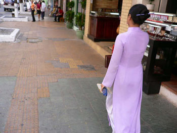 彼女と去年に会ったレストランは閉まっていて、今はCreation Boutiquesで働いてい るので、付いて行く。 有名な店なのか、日本人がチョクチョク来ては、アオザイのオーダーメイドをしてい る。シルクの生地で、250ドルほどらしい。