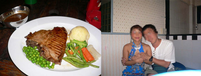 Bus Stopの入り口で開いてるのか聞くと、目当ての女の子だった。彼女に連れられて 席につく。 今日はTボーン ステーキ。10日前にPBすると言ってあるのに、店の方針なのか、PBの 事は言って来ず、電話ばっかりし、期待はずれ。しかも、PM11時で仕事は終わりらし く、挨拶もなしに帰ってしまうし。