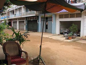市内の北側にある「日本カンボジア友好橋」(って日本人しかそう呼ばない)の近くにも置屋が分散しています。たくさん集まっているのは、橋のたもとから道路を300mほど南に行ったあたり。