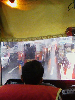 当日、ナイア空港は激しい豪雨と落雷! バッグに入れていたビニール袋をかぶり、バス乗り場へ。 グッドタイミングでパサイ行きがきたので手を振ってアピール 。