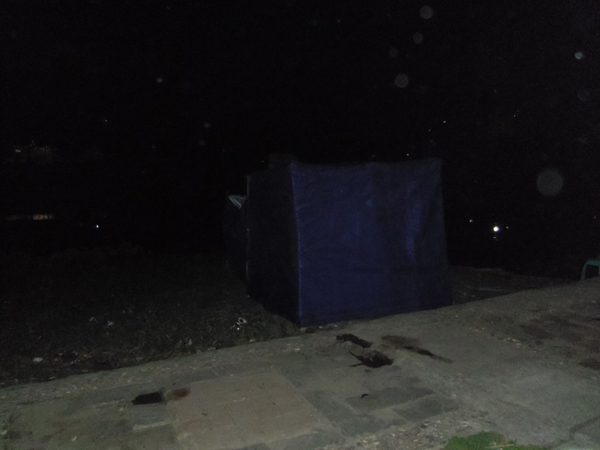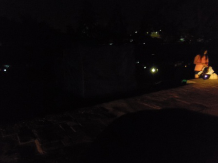 周囲は街灯もなく、通り過ぎる車のヘッドライトしか明かりがありません。小屋の中はほぼ真っ暗でしょう。