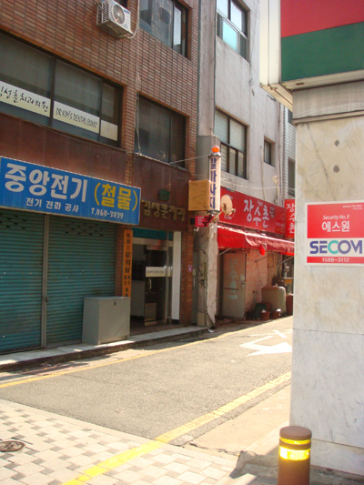 まず一軒目は、地下鉄中央駅11番出口より南浦方面に歩き、最初の角(ステンレス製のアーチの掛かった通り)を右折。左手奥のビル2階付近に、白地に青と赤で「? ???(足マッサージ)」と書かれたクルクル回るサインポールが見えるはずです。
