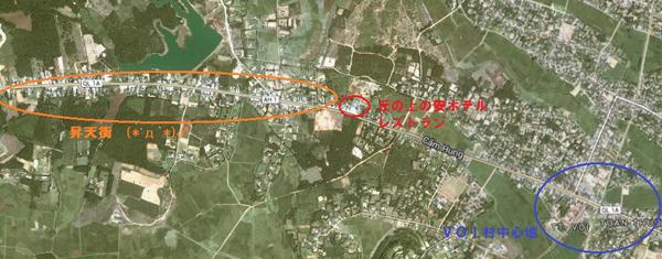 一応GoogleMapの航空写真をつけとくが、 わかりにくいので、あんまりケチらずにタクシーが良いと思う。