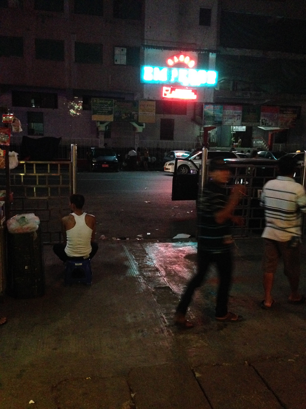 向かいのビルの上のビアガーデンで一杯飲んで、疲れたのでホテルに帰りミュージッククラブでも見ようかとタクシーに乗ります。