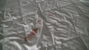 20分ほどかけてお腹の上にフィニッシュ。大量の出血でした。