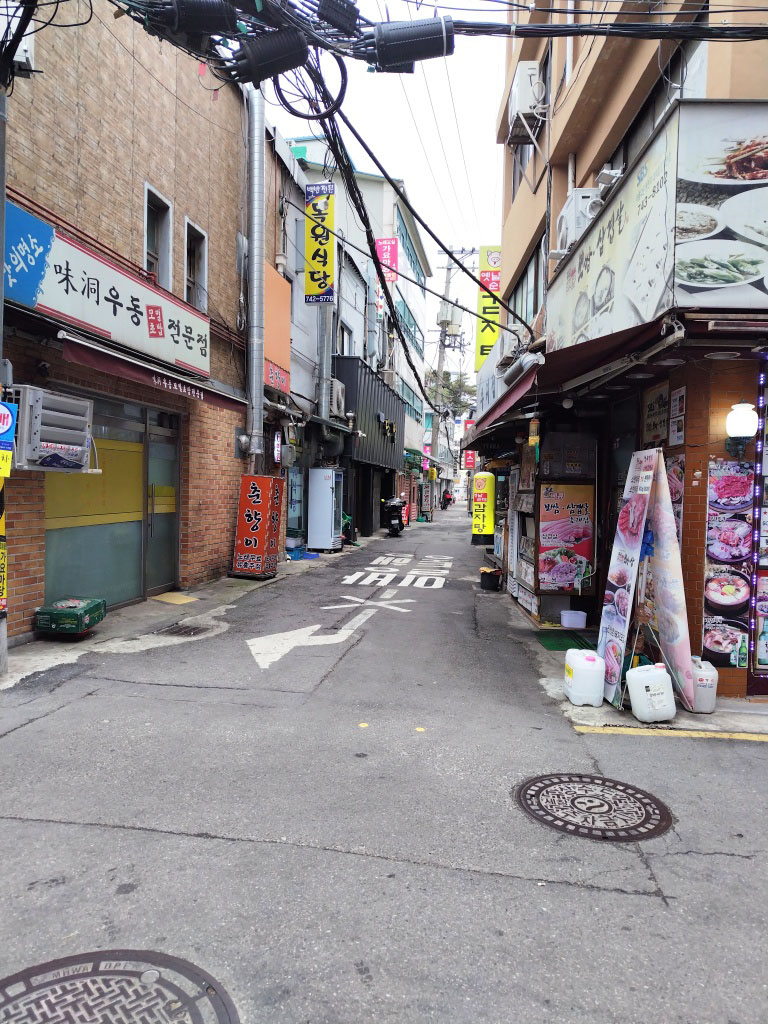 店舗建屋(置屋)は永登浦駅側から高速道路側に向かい100店舗以上あるが、 実際に営業しているのは40~50店舗。基本、若いアガシが多い。