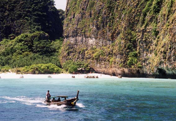 次のステイ先はピーピー島。何年か前レオナルド・デカプリオ主演のB級映画「ザ・ビーチ」の舞台となったところ。 ピーピー島への船は、地元タイ人の他はアジア系ほとんどなし。アメリカ、ヨーロッパからのバックパッカー多し。