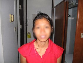 速攻でカーボーイに戻ってみて「ダーちゃんは?」と聞くともう帰ったとか言われる し、歩道の穴に足突っ込んで足が血だらけになるし。あーツいてない。 やけになってビール飲んだ後、足を血だらけで歩いていて「ジョイ」の前を通りか かった時、声を掛けられウェットティシュで私の足を拭いてくれました。 「あー優しい娘だなー。」と馬鹿な私は思い始めました。(写真1)