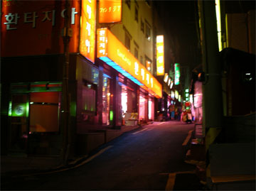 何軒が同じオバサンケースに出会ったが、とりあえずワノルドン置屋街を1周できた。 しかし、女の子をじっくり選ぶ余裕はなかった。 その中で、”ファンタジア” という店に1人好みの子がいたので、 値段交渉に入った。 事前学習では相場は7万W~10万Wであるが、6万Wで交渉した所、最低7万Wで引かない。