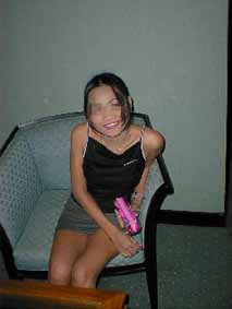 彼女とホテルの部屋に入るや否や、彼女は「今2500Bとタクシー代100Bくれ」と言うので、2500Bだけやって100Bは明日の朝あげると言った。彼女は金を受け取ると風呂に湯を張り始めた。しかしお湯はぬるいお湯しか出ずかえって寒くなってしまった。風呂からでると彼女は「明日学校があるから5時に帰らなければならない。」と言い出した。「明日は日曜日だろう。」と言うと、「日曜学校に行っている。」などと言う。しょうがないからOKした。ベッドに入る前に裸の写真を撮ろうとしたがすげなく拒否された。