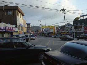 ここの場所は、位置的には金村と最終駅のムンサンの中間のようですが、ムンサン駅へは12番のバスで15分ほど、距離にして10km程です。夜遅くなるとバスの便は無くなりますが、タクシーの乗り場がピザ屋の前にありますから心配ありません。置屋街の近くには温泉マークの旅館(連れ込み宿)が3件ほどありますが、ピザ屋のオヤジの話では半分の人がOK,半分がNO GOODという判断をするようです。できればちょっと大きな町、ムンサンに泊まることをお勧めします。