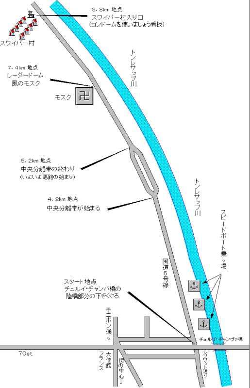 スワイパー村(Ph Syay Pak)への道のりは意外と遠いので、初めて行く時はバイタクの 後ろで不安になる方も多いと思います。 2000年5月~6月にレンタバイクを使って調査してきたので少し詳しく説明します。