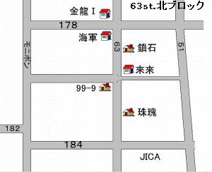 63st.北ブロックには6軒のMPが固まっていてお互いに競い合っています。 キャピトルのある182st.からモニボン通りを越えさらに東側にある南北に走る通りが 63st.です。ほとんどの交差点にはこの写真のようなサインが立っていますから間違え る事はないでしょう。