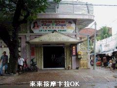 鎖石按摩の並びでやや南に來來按摩があります。 ロビーと金魚鉢は南北ブロック中一番きれいですが、部屋にエアコンはあるもののシャ ワーは無いので服を脱いでから別部屋の風呂場に行かなくてはなりません。風呂場と 言っても溜め水ですが、スワイパーのように白濁はしていない透明な水ですし、タオル も乾いた洗いざらしを出してくれます。お嬢さんの数も南北ブロック中一番多く、犯罪 領域に入りそうな若いのから年増まで選択範囲は広いです。ここも私お薦めの一軒で す。